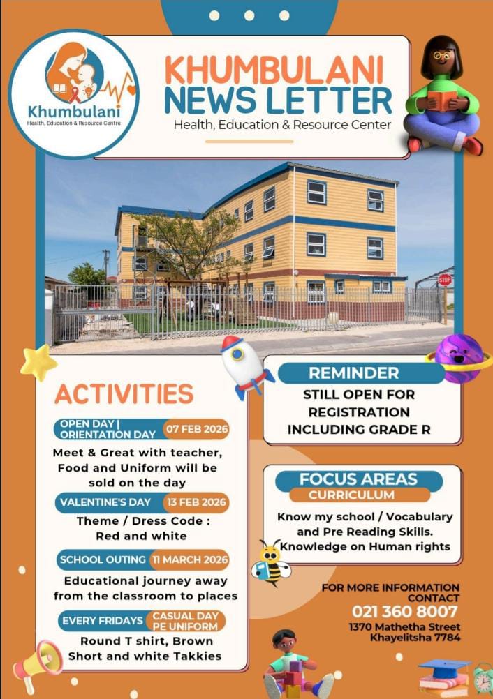For over 23 years, Khumbulani Health, Education and Resource Centre has been transforming lives in Khayelitsha through holistic child and youth development. We believe in strong partnerships, continuous learning, and aligning our work with national development goals.